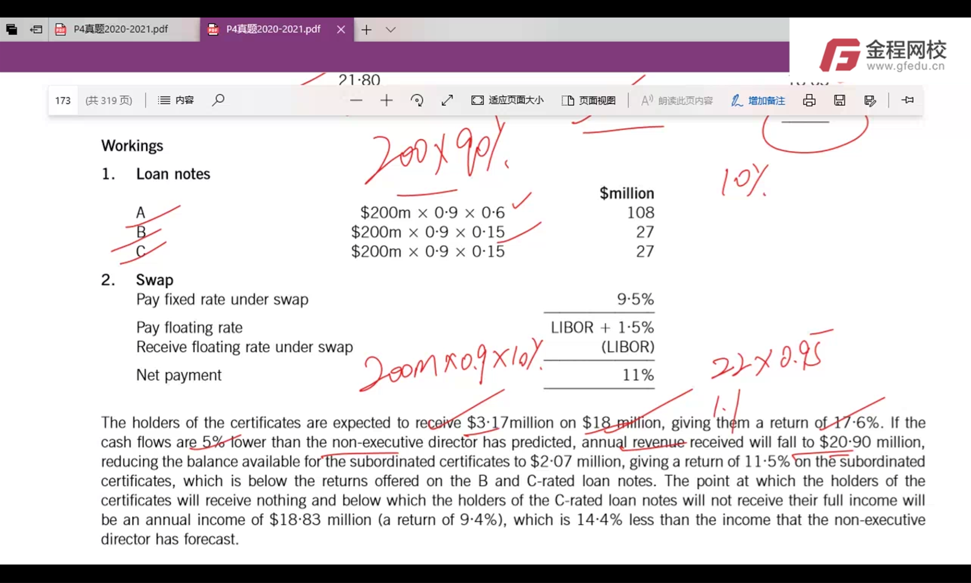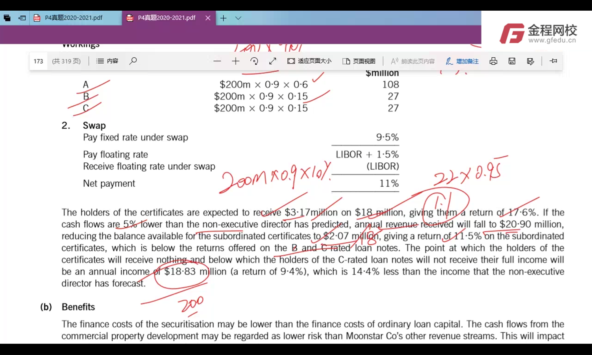 老师好,想问一下这边的计算,财务总监觉得rental income会比NED预计的少5%,讲解里在22m的基础上少5%,因为题目里财务总监的部分没提到annual cost所以计算里也不涉及吗?我用NED减掉这个cost的rental income也就是21.8m的基础上少5%答案就不对了