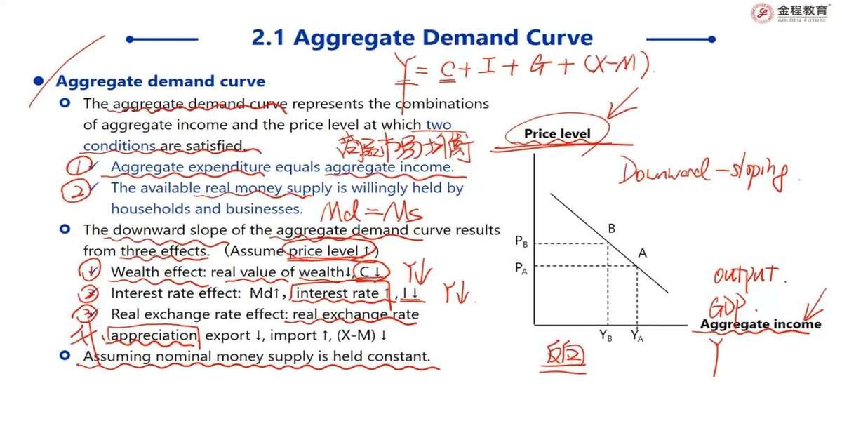 - 前面在讲Aggregate demand curve的时候说,价格上涨使消费下降,而这里又说价格下降消费变少,为什么存在矛盾?