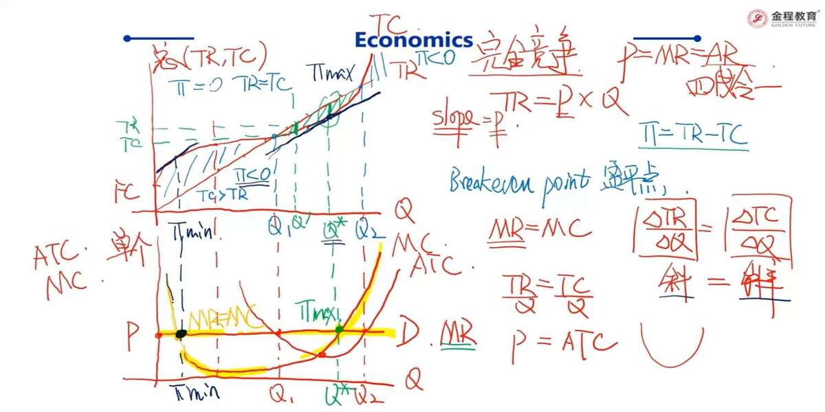既然AR=P=ATC是盈亏平衡点,那么这里MR=AR=P=ATC,这里的MR可否加进去?因为在完全竞争市场下,P=MR=AR
