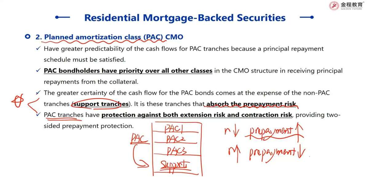 PAC结构的support层可以吸收提前还款的风险,指的是一旦借款人提前还款了,先由购买support层的投资人承担这个提前还款的风险;如果延期还款了,support层的投资人最后收到还款吗?如果是这个意思,那么support层的投资人为啥要买这个support层的资产,是因为这个资产的收益更高吗?