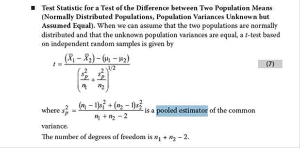 A pooled estimator is used when testing a hypothesis concerning the:A.equality of the variances of two normally distributed populations.B.difference between the means of two approximately normally distributed populations with unknown but assumed equal variances.C.difference between the means of two at least approximately normally distributed populations with unknown and assumed unequal variances.这道题没太明白啥意思
