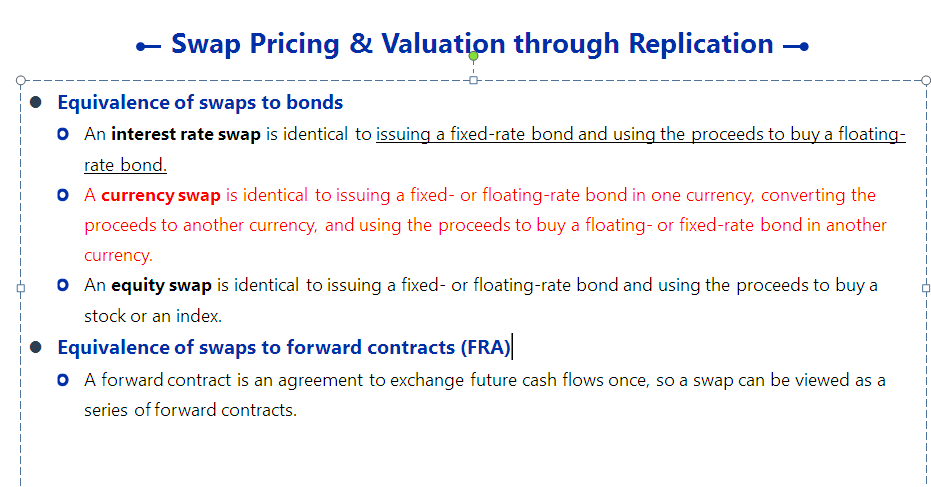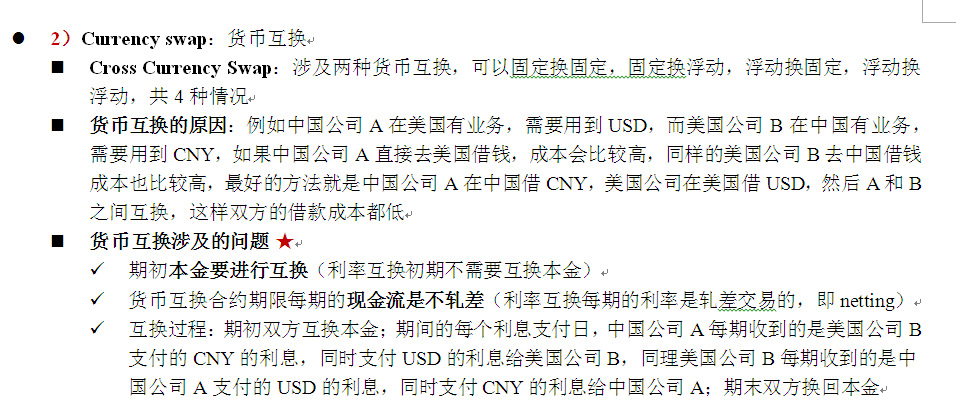 课件关于currency swap的介绍的确少,我把冲刺笔记总结给你粘过来了,简单看一下哦。如果有currency swap 的问题可以继续联系Emma ~