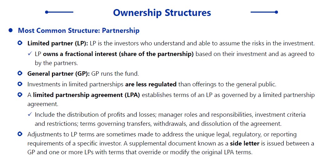 同学你好。考察基金投资结构,在讲义(ownership structure)中均是有讲过的。