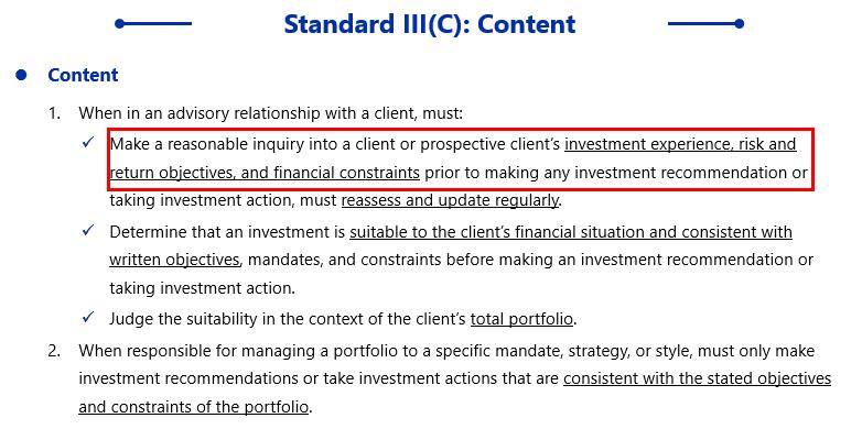 是的,要考虑client’s investment experience, risk and return objectives, and financial constraints等因素然后确定IPS