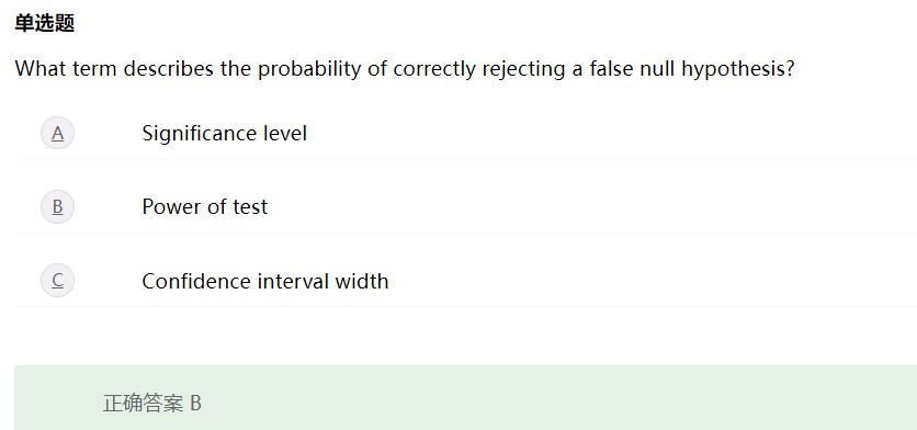 B的Power of test,是当原假设错误的情况下(置信区间也错误了),正确拒绝了原假设