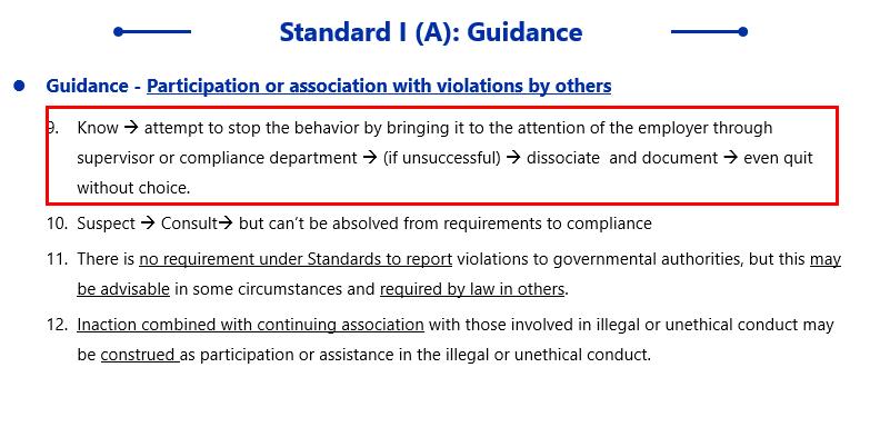同学你好,Knowledge of law要求如果发现了违规事件,应当向主管或者合规部报告,让他们制止违规行为