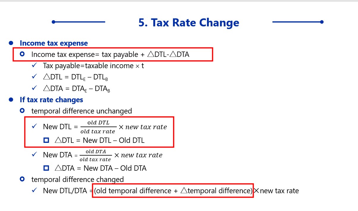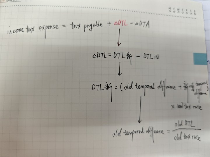 我不太懂税法上的temporary difference,如果两年的税率变了,为什么要用前一年的pretax financial income除以税率再加上前一年的taxable income,这是什么道理。然后deltaDTL还要用这个temporary乘以今年的税率再减去前一年的DTL