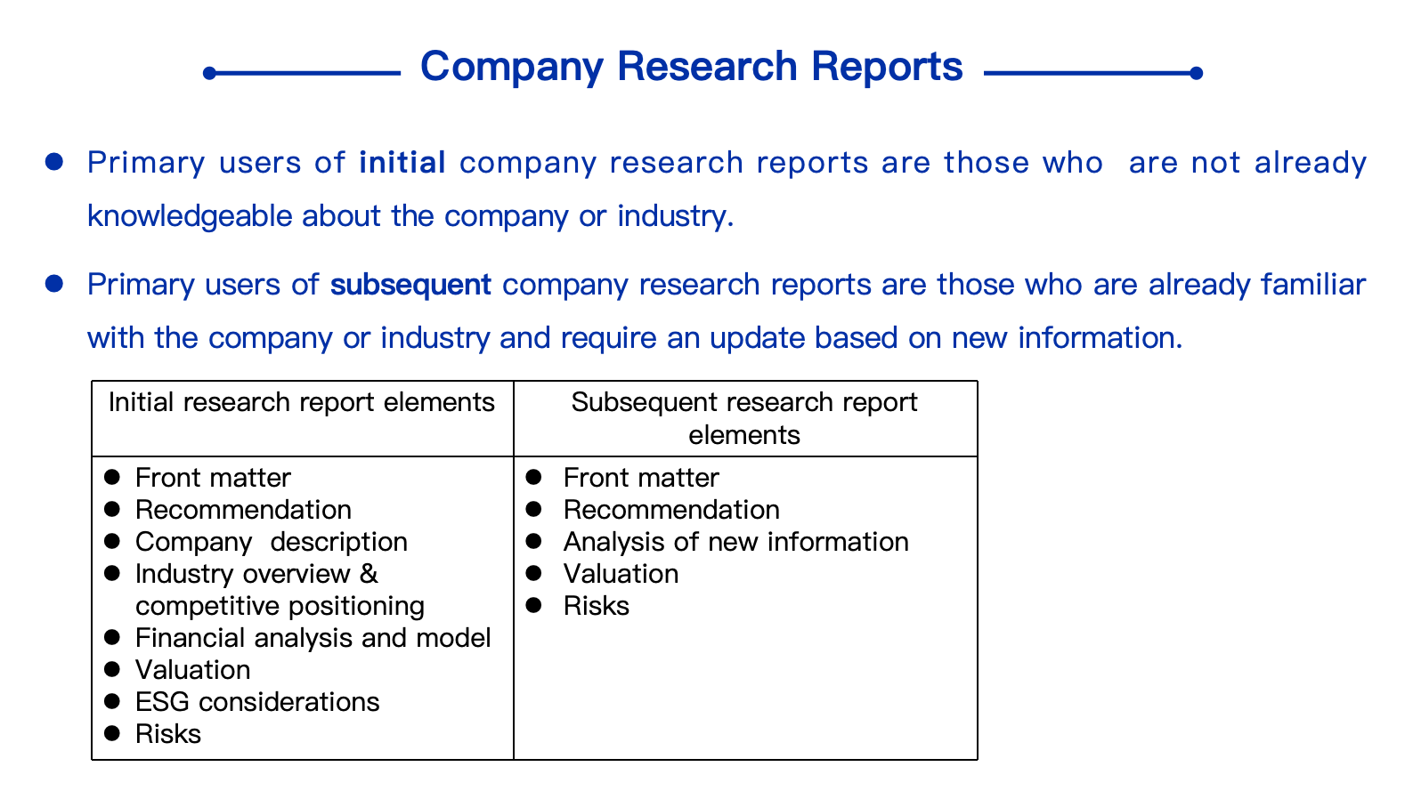 initial report适用于对公司还不了解的时候。包含competitive positioning,对公司竞争力的分析。