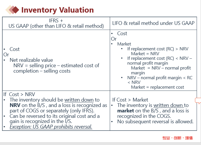 如果是不使用LIFO以及不使用retail method的美国准则,他的存货价值计量方法和IFRS一致