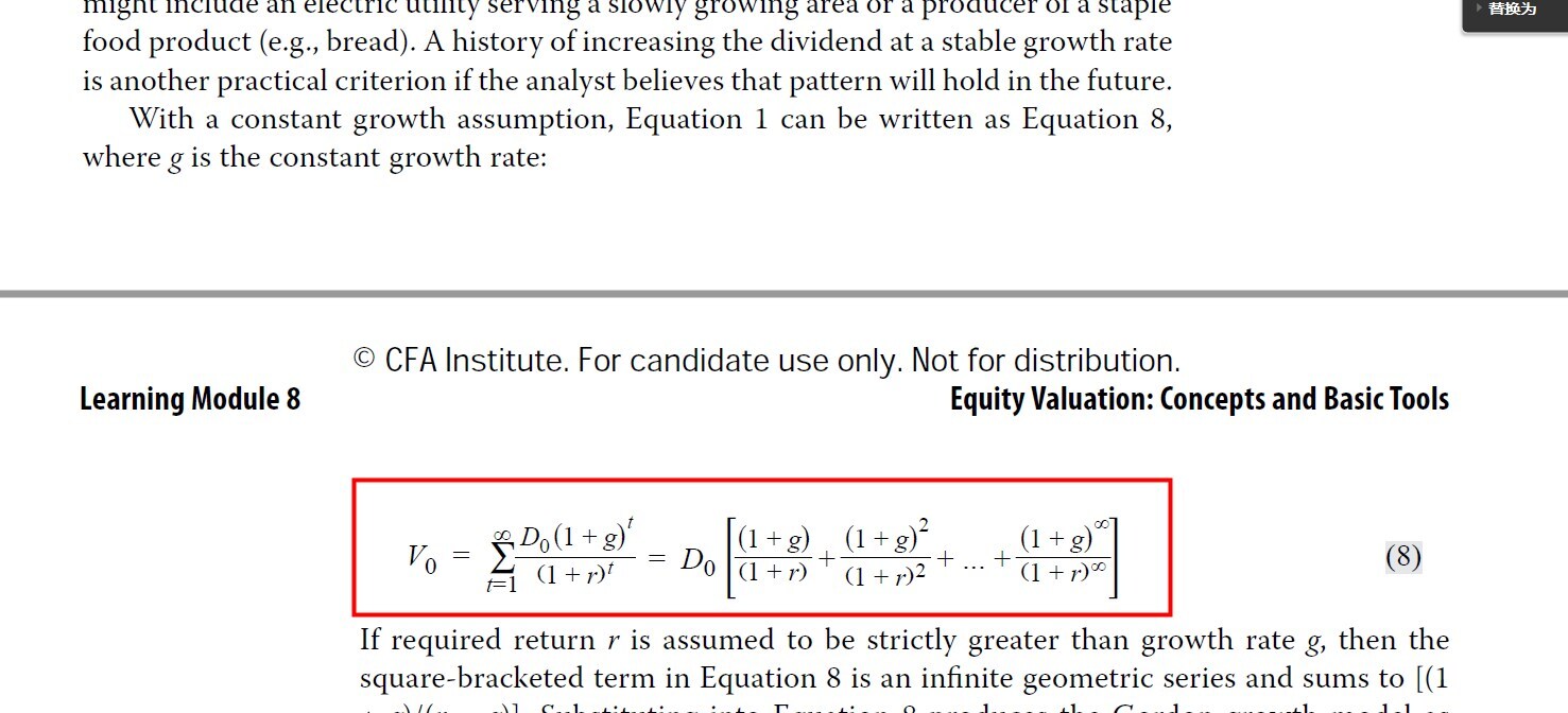 公式可以参考截图,就是现金流折现,如果增长率g下降,那么分子数值降低,V0(即现值)就会降低