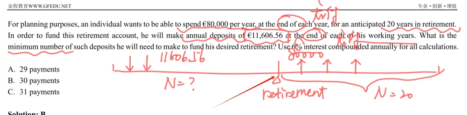 前一个年金的存入才能有后一个年金的支取对吧,那么后一个年金的所有支取的PMT的PV是不是就是前一个年金的终值FV了,如果需要,这个点主人公可以直接取出来后一个年金PV的现金,但是他是要作为年金逐月等额支取,那么就看似两个年金交接点没有PV这么多的现金流,实际上第一个的FV就等于第二个的PV。