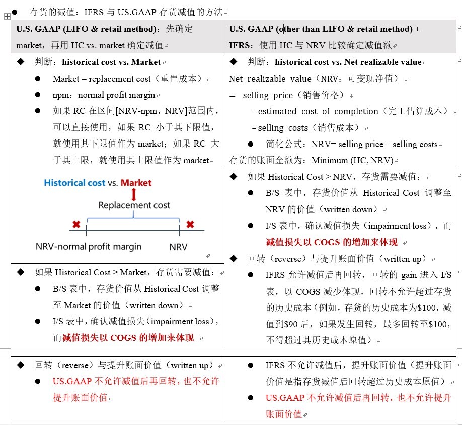 能补充一下IFRS与USGAAP关于存货兼职的区别表吗