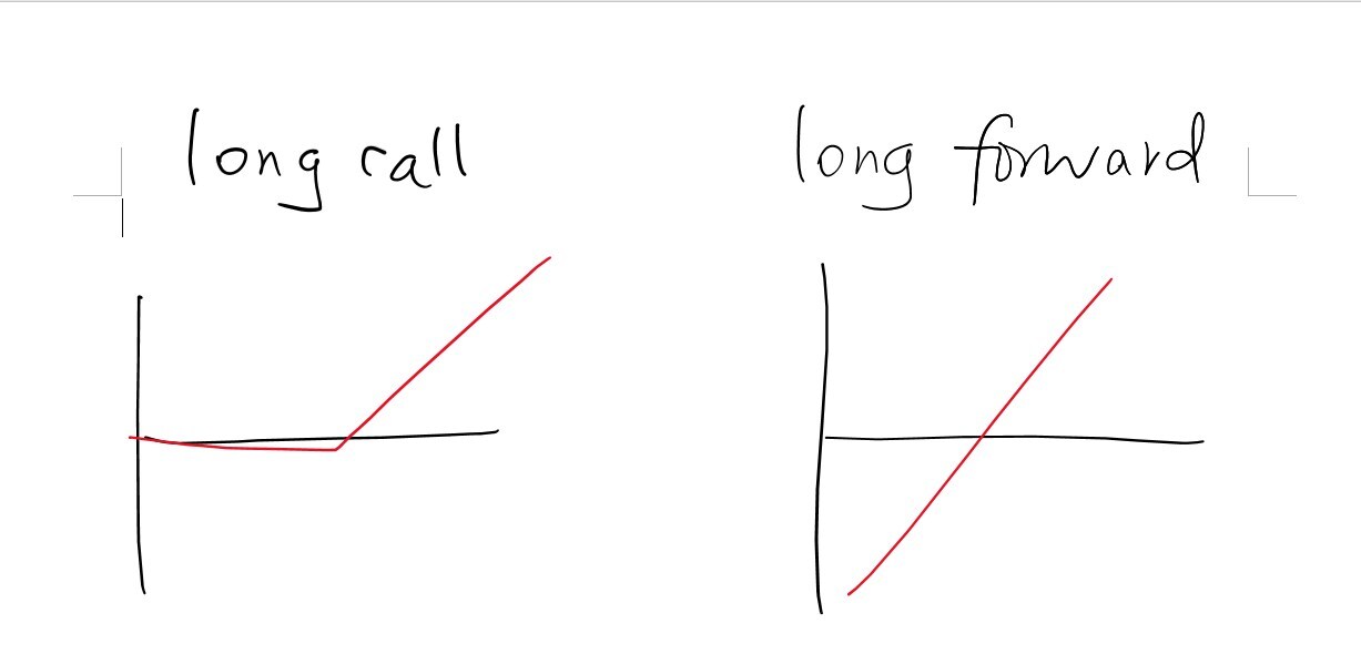 long call和long forward的profit比较有没有图形可以解释一下?还有short put和long forward
