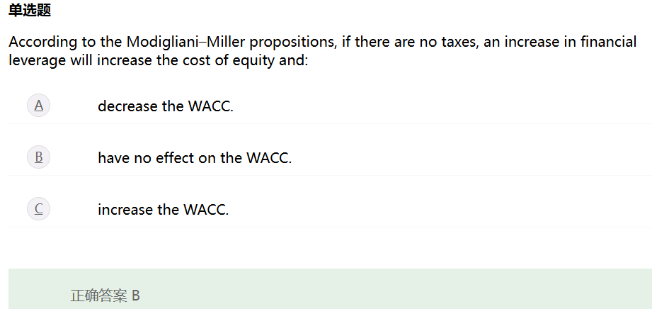 同学你问的是这题吗?我看了下不涉及对于站在什么角度的判断,只是对MM理论的结论进行了考察。如果答疑对你有帮助,【请采纳】哟~。加油,祝你顺利通过考试~