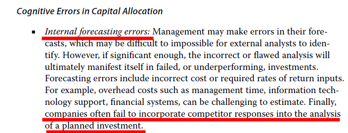 忽略这个投资相会带来的竞争对手的反应这个属于Internal forecasting errors这个pitfall。