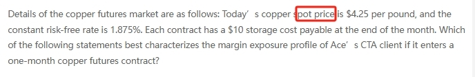 看清楚题目,给的是spot rate,你怎么乘完就是F的?期货价格不会写在合约里,是随市场供需交易而变动的。
