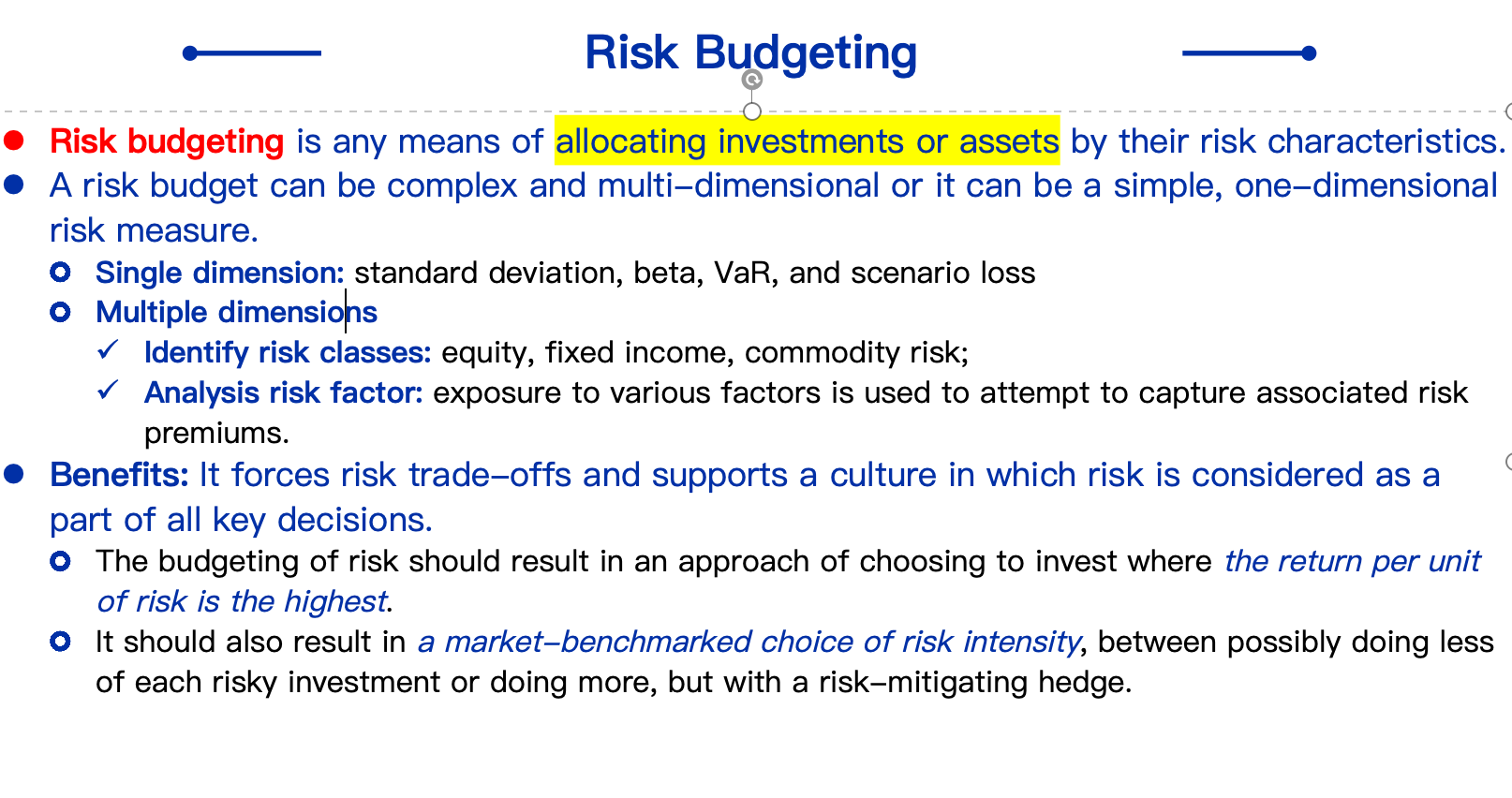 B关键词是aligns risk management activities,结合整体风险管理目标进行风险的分配,做好风险预算管理,比如某个项目有多少风险,愿意投入多少资源。