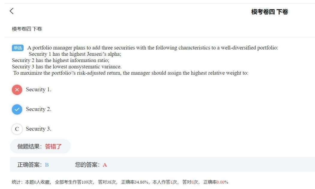Jesens's alpha和IR都是衡量主动投资的,主动投资都是去追specific risk非系统性风险,不追系统性风险。然后题目是adjusted return,它这个是追系统性风险的,如果Beta越高,它这个数值越高。