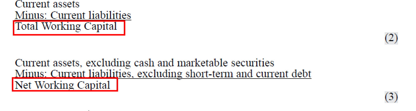 我的提问是:书P239-knowledge check 3-Question 1和2,表格中标黄的short-term bank loan,到底是不是current liability?为什么第1问中计算net working capital时,不考虑这个short-term bank loan, 但是第2问计算cash ratio, quick ration, liquidity ratio,分母上都需要考虑这个流动负债short-term bank loan?