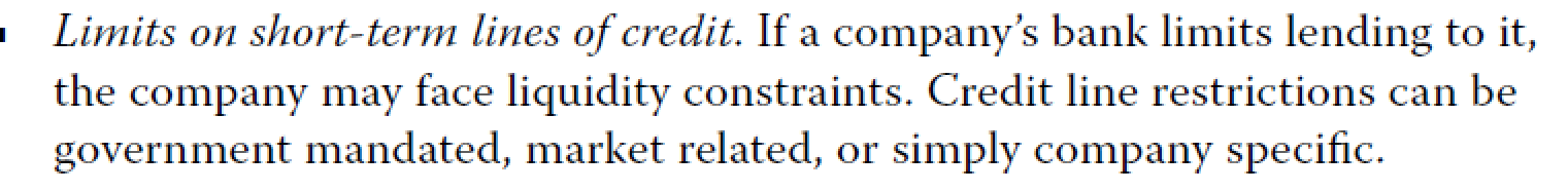 lender是借钱给公司的机构,比如银行,并不是和公司有业务关系人。lender 降低了line of credit相当于是降低了贷款额度,那么要求企业更快的还款,比如企业原来企业可以借100w,但现在只肯借50w了,那么超过50w的部分就要还给银行了,因此是pull on liquidity。既不是赊销也不是赊购。