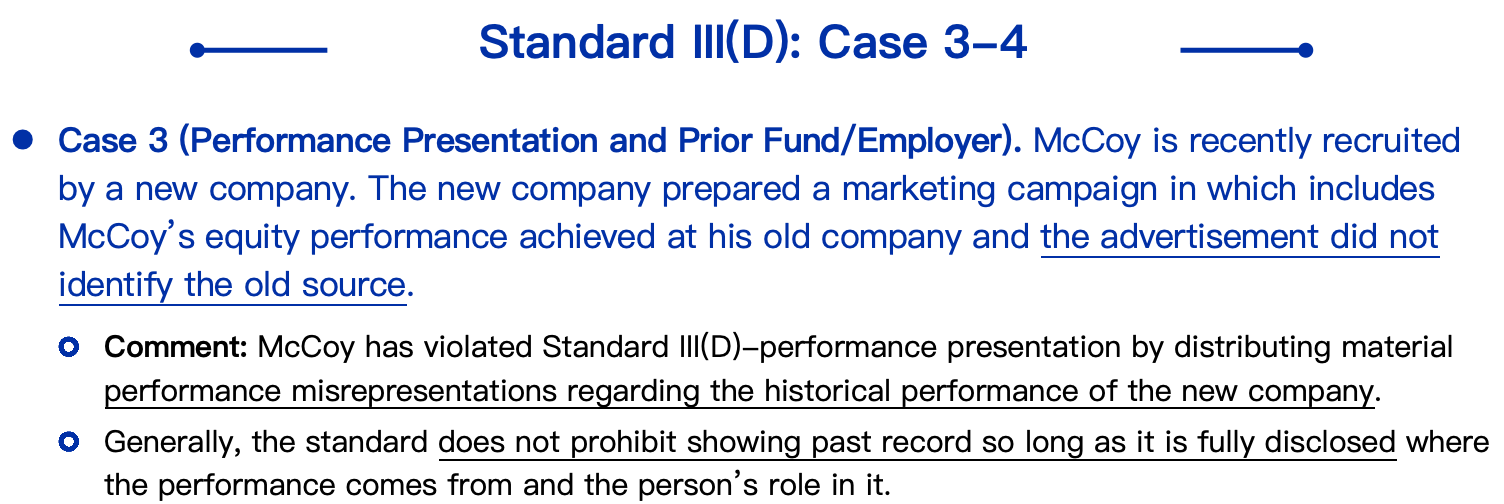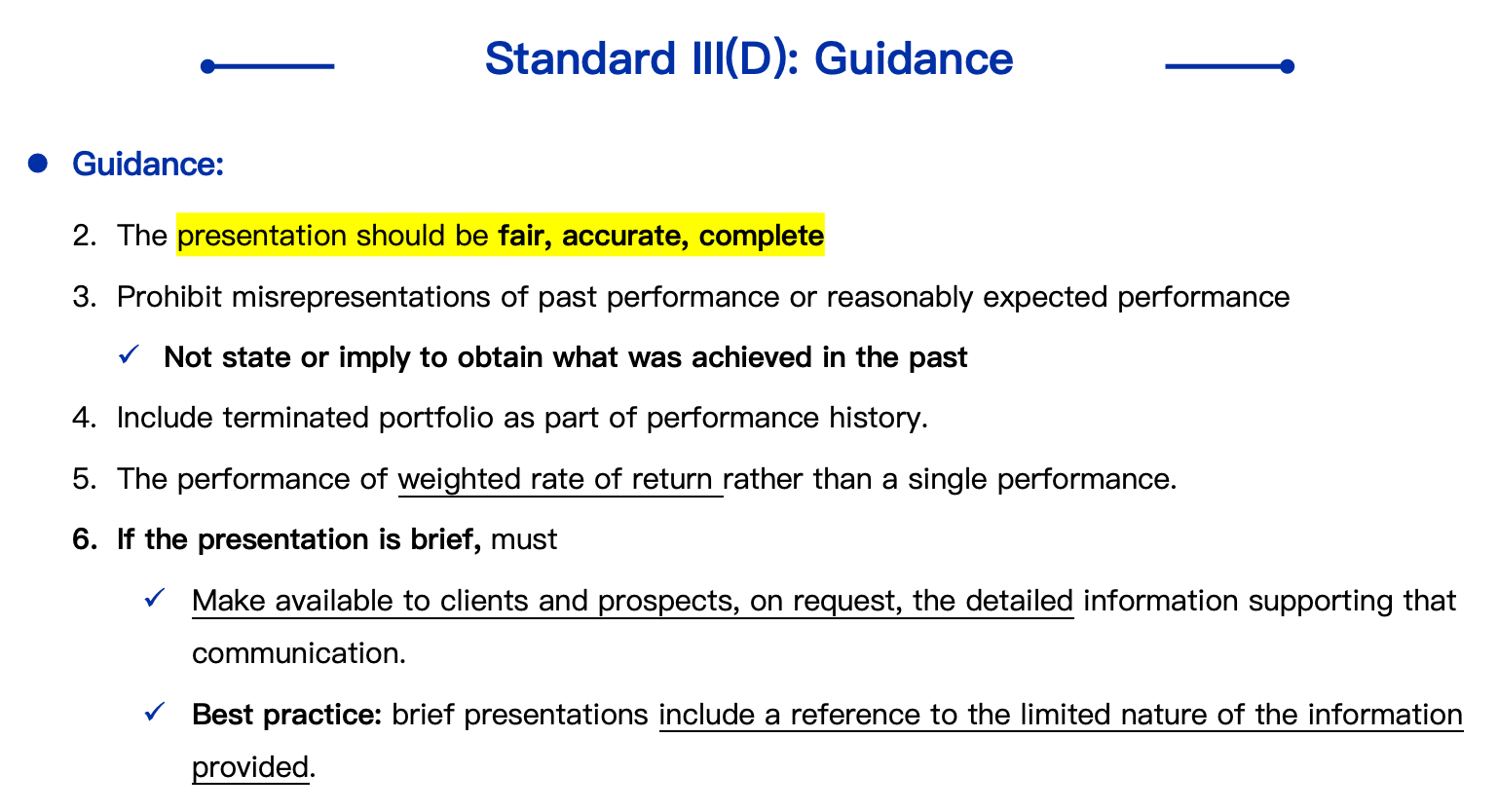 Performance presentation侧重的是duties to clients,要对客户尽职尽责,业绩展示要公允完整真实。