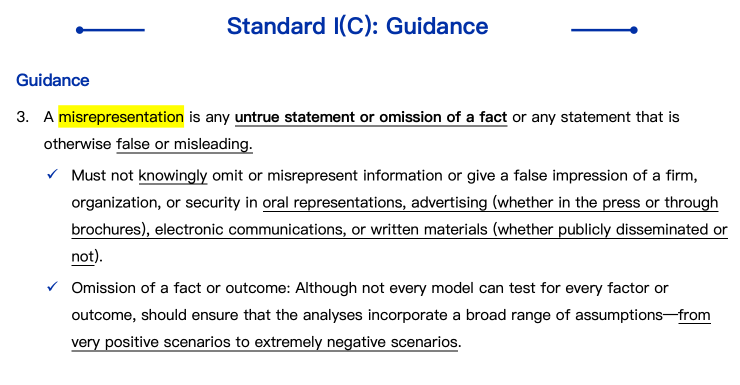 Misrepresentation是站在专业性角度来说的,对外展示的内容要做到准确无遗漏,体现金融人士的水平。展示的东西不一定是针对客户的,可以参考图1 case3.