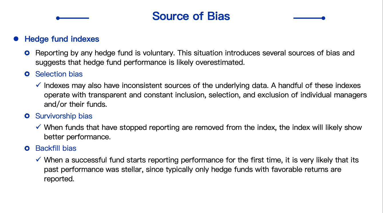 在最后Hedge Fund这一节我看到这个内容了,但金程给的中文精读依然没有selection bias。