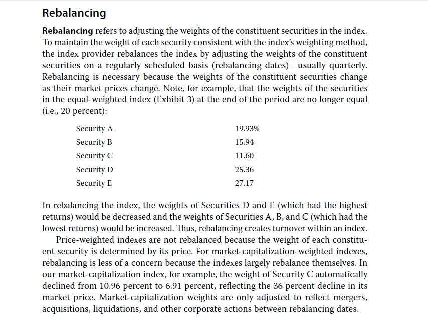 “price weighted indexes are not rebalanced”,