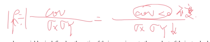 已知相关系数为负数,当各自方差下降,也就是标准差下降。