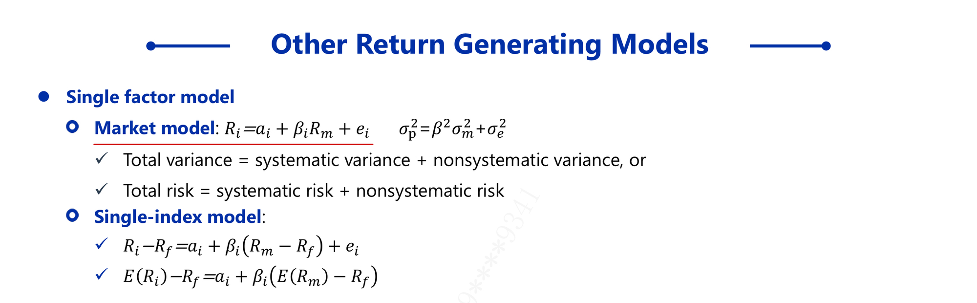 同学你好,这道题目说,对于产生回报的模型,市场模型的截距项是资产的估计值是什么,其实问的是market model。