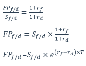 同学你好,下图第一行是经济学的抛补利率平价定理,依据这个定理,我们可以得到2和3式,2和3的差异在于2是离散复利的公式,3是连续复利的公式。数量这里采用了连续复利的公式。
