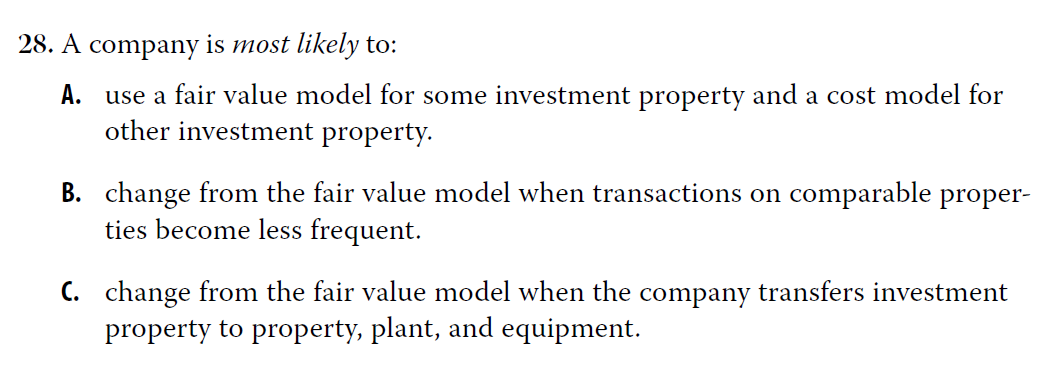 选项B和C的表述是不是有问题,要么是change the fair value model when....要么是change from the fair value model to cost mode when...