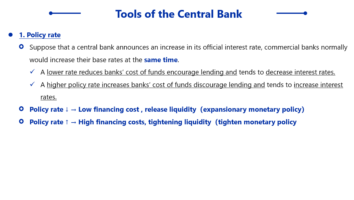 你好财政政策就是税收和政府开支,扩张就是增加政府开支和减税,反之就是紧缩。货币政策有政策利率、存款准备金和公开市场操作。相关我贴下面了。