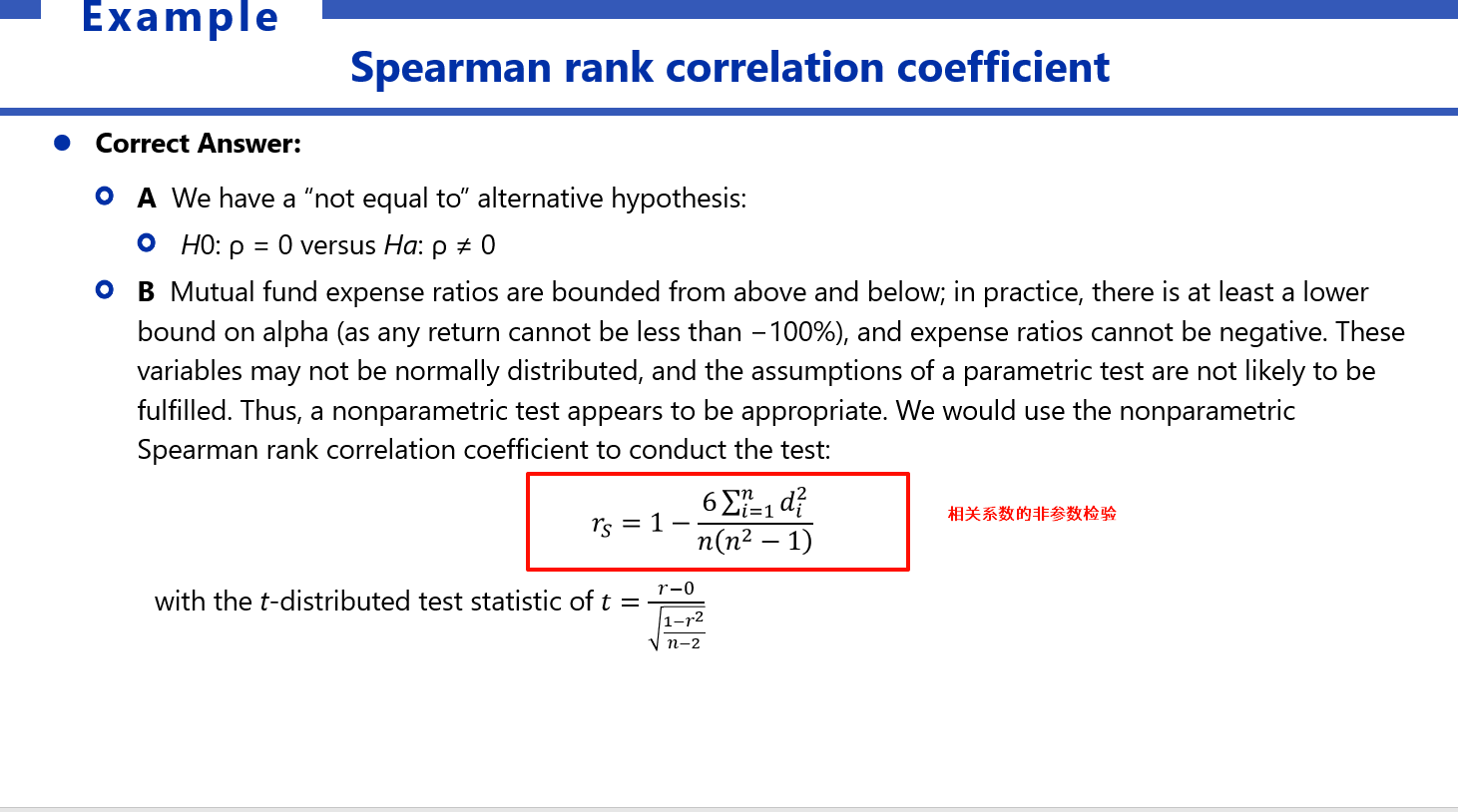相关系数的参数检验公式和非参数检验公式一模一样啊,做题时如何区分考察的是参数的还是非参数的?