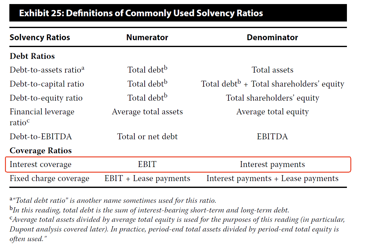 见截图,截图1是cash flow coverage ratios,截图2是coverage ratio。一个是CFO版的,一个是EBIT版,角度不一样。