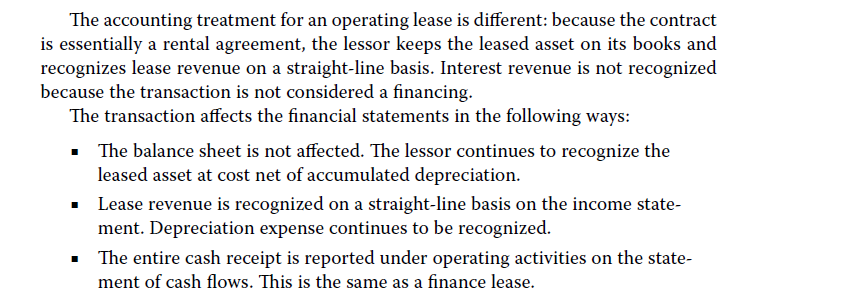 问题1:lessor下的融资租赁的利润表中,只确认一笔利息收入,不需要确认本金减少吗? 问题2:lessor下的融资租赁,应收租赁款不需要计提折旧吗? 问题3:LSSOR下的经营租赁,没有现金流吗?