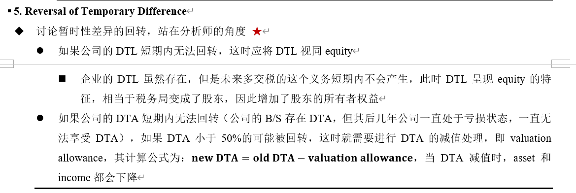 暂时性差异差异查收DTL或DTA时,分析师观点如下: