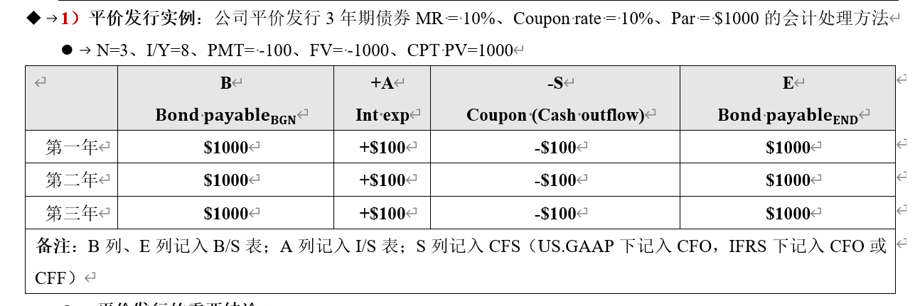 因为是平价债券,所以interest expense=每年的coupon