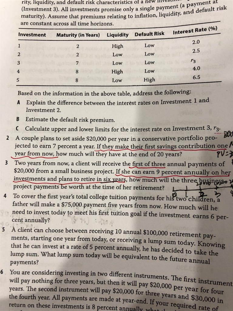 同学,你好:不好意思,首先针对 第 2 题 是后付年金的,make one year from now 表示第一期期末发生第一笔现金流,于是 N =20 I/Y = 7 PV = 0 PMT = 20000 计算 CPT FV,即20年年末的终值,第 3 题 在 payment 过后两年每年还有 9% 的回报率,其实简化考虑,假设之后还是 9% 的复利利率。