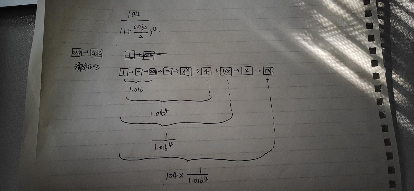同学你好,这题不能用年金或者cf排键计算,只能分开算,以最后一项为例,计算器按键如图。