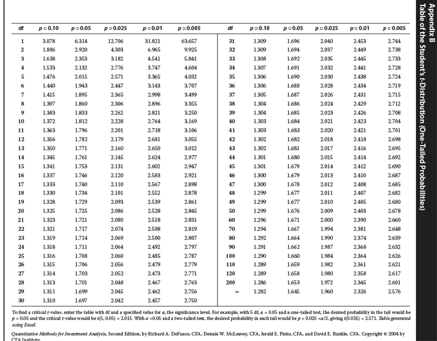 第5题需要根据原版书后的Appendix B的t-student分布表