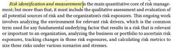 同学你好。A选项内容是基层员工做的事情,涉及到对风险定性和定量的衡量。具体可以参考下图原版书内容。