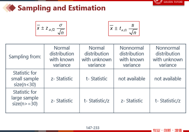 2.对于查表来说,哪一张表,可以按照下图判断:“如果是正太小样本,方差已知用Z分布,方差未知用T分布”