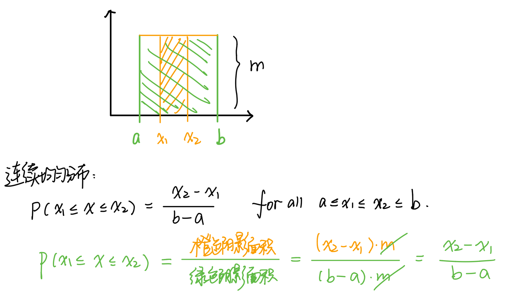 同学你好,连续均匀分布的概率可以用面积来计算,具体如图。