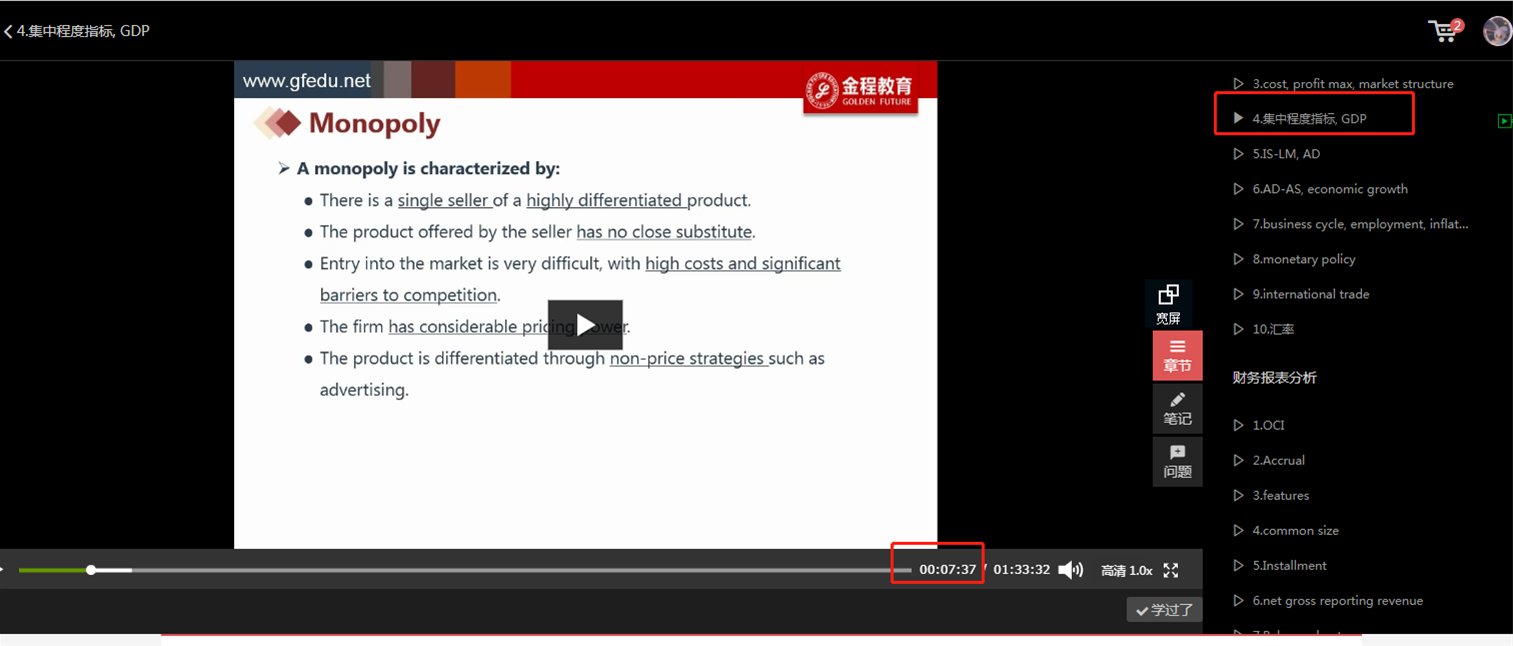 同学你好,这部分视频的内容,在“2006CFA一级预习课程”中,“1906一级在线基础段”《经济学》课程的第4个视频的7分37秒处有替换讲解。内容一致。可以看一下,找不到的话可以微信找我,我截图给你。