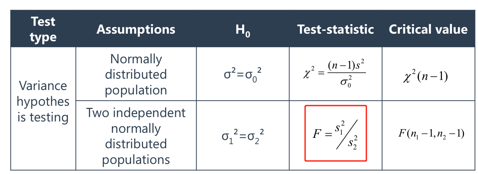 林同学你好,在F检验中,test statistic是两个样本方差相除,将大的那个除以小的那个。