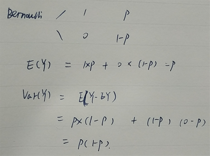 伯努里随机变量X、Y的均值和方差怎么推出来的?