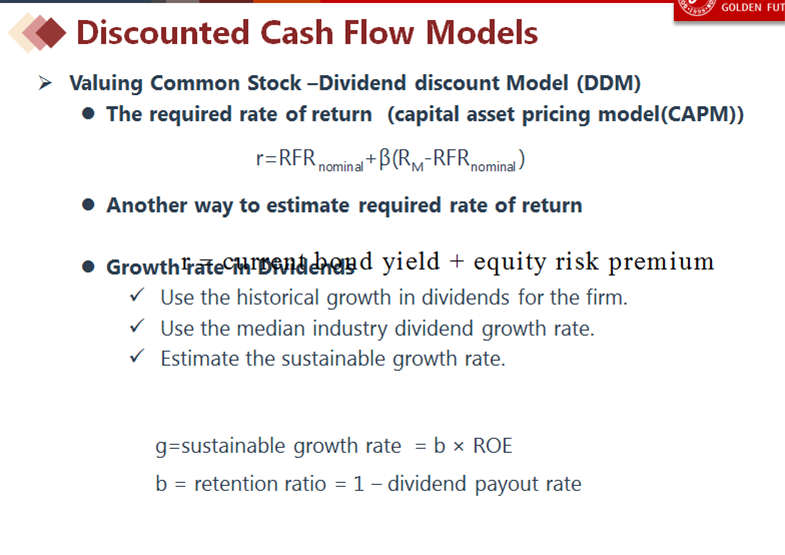gorden model中的r是通过CAPM来求,还是required rate of return?本章第12页的r是通过CAPM来求得,16页的example又变成了required rate of return (不好意思,我上传图片的时候不支持格式)
