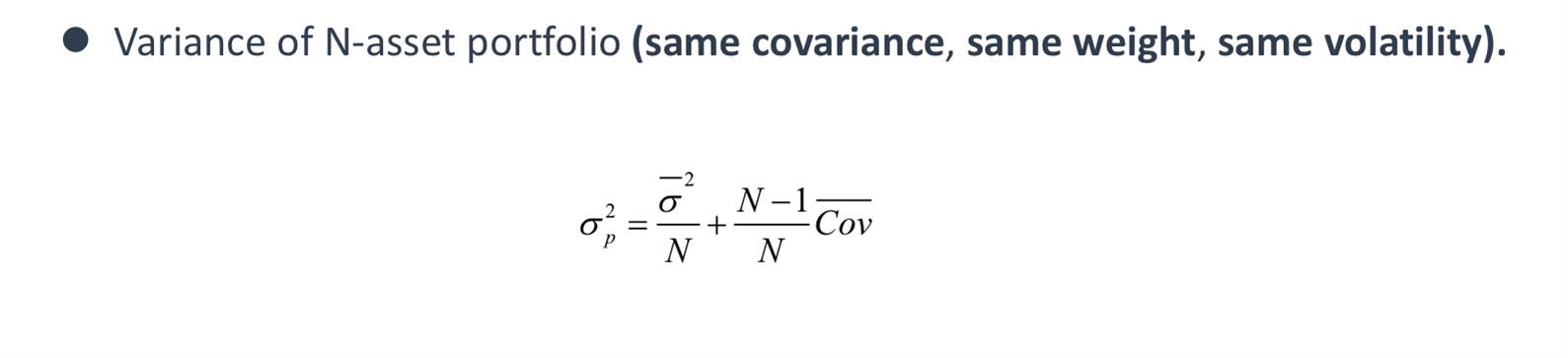 同学你好,当投资组合当中涉及的资产数量变多的时候,此时资产之间的协方差对于组合的方差贡献度更大。