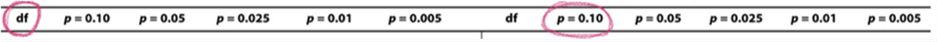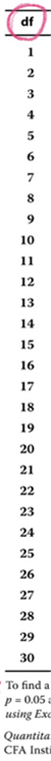 当去找“critical value”时,需要依据a值和df值去正太分布表中找。以t分布表为例(原版书Appendix中有Students´ t-Distribution),纵为自由度df,横为“desired probability”(用p表示)。